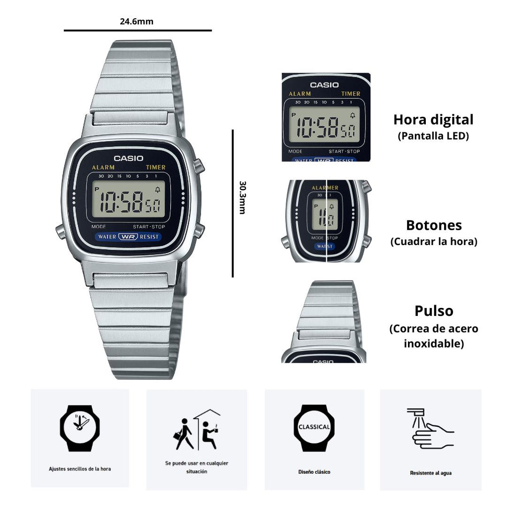 Agrega un toque de clase a tu apariencia general usando este reloj digital de la marca CASIO. Con un atractivo dial cuadrado y una robusta correa, este reloj es de larga duración. No solo es liviano, sino que también se adapta cómodamente a su muñeca.