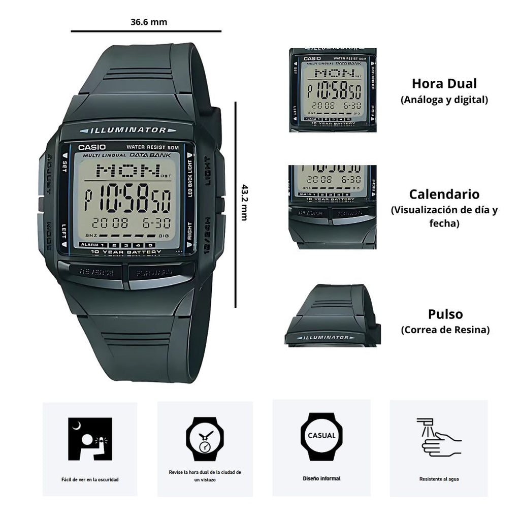 Reloj Casio Referencia DB-36-1A Diseño Deportivo