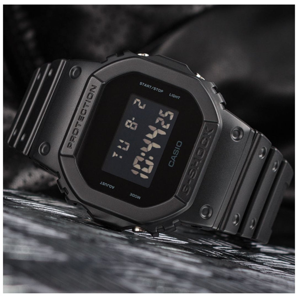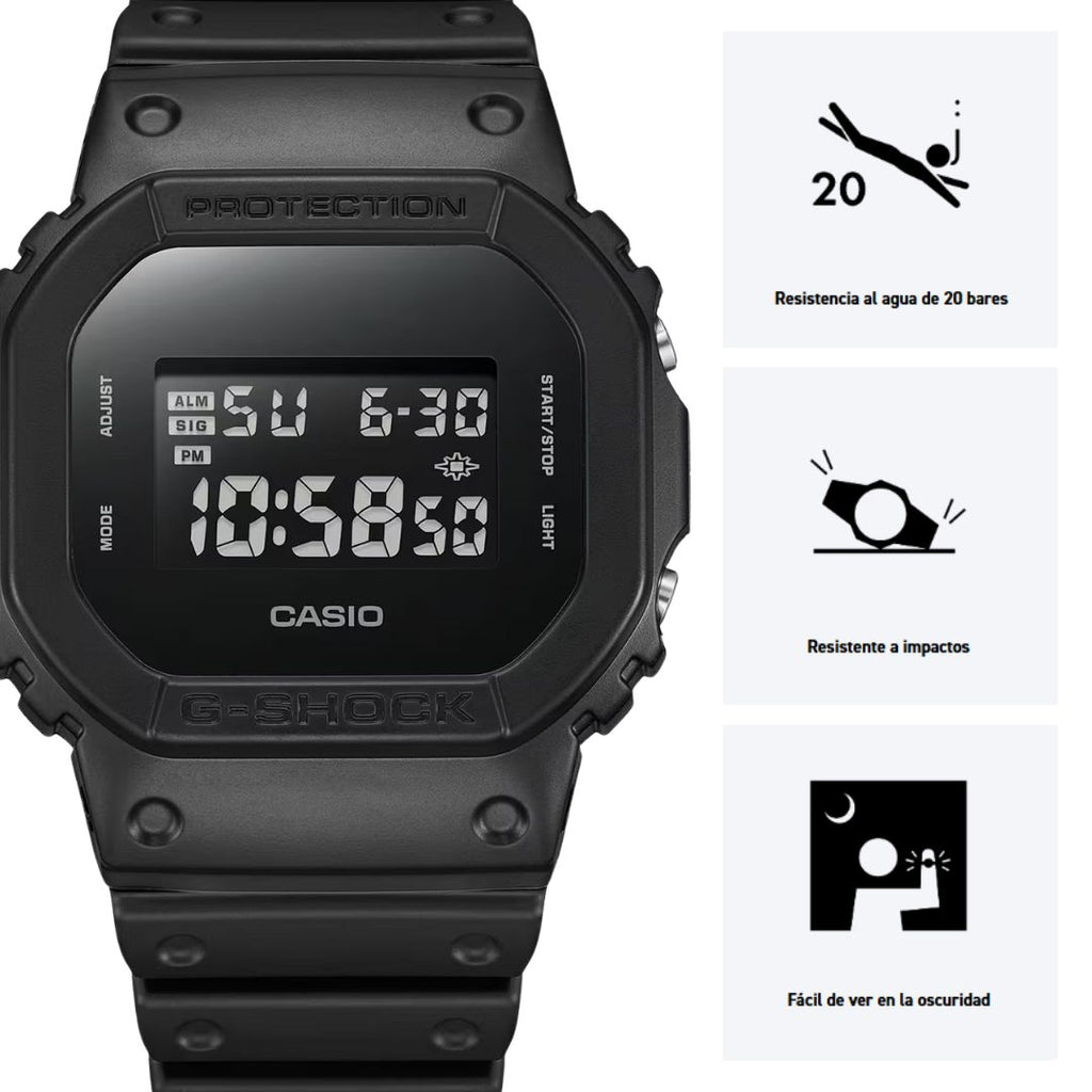 Se trata de un modelo G-SHOCK con temática de colores lisos en blanco y negro. Este reloj es totalmente negro y su textura lisa se enfatiza con el color de un solo tono. El color mate del cuerpo y la correa del reloj no solo permite una combinación de colores sencilla, sino que también resalta la forma del propio reloj. Con su distintivo diseño liso, este modelo se puede llevar como un accesorio de moda.