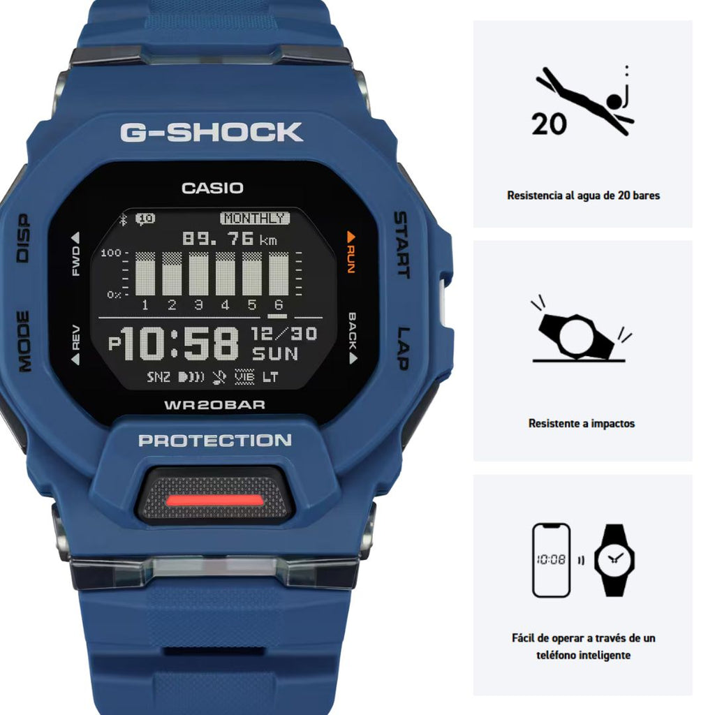 La pantalla incluye las calorías quemadas, un contador de pasos, un temporizador de intervalos y un temporizador de vueltas para mantener su ejercicio diario según lo planeado. También utilice la aplicación para verificar los Life Logs y el historial de actividad de su reloj. Gracias a los orificios de ajuste adicionales en la suave correa de uretano, que brindan un ajuste de precisión y calidad, estará listo para disfrutar de una función plena y una comodidad total. Disponible en verde lima, negro o azul marino.