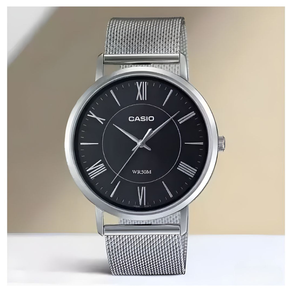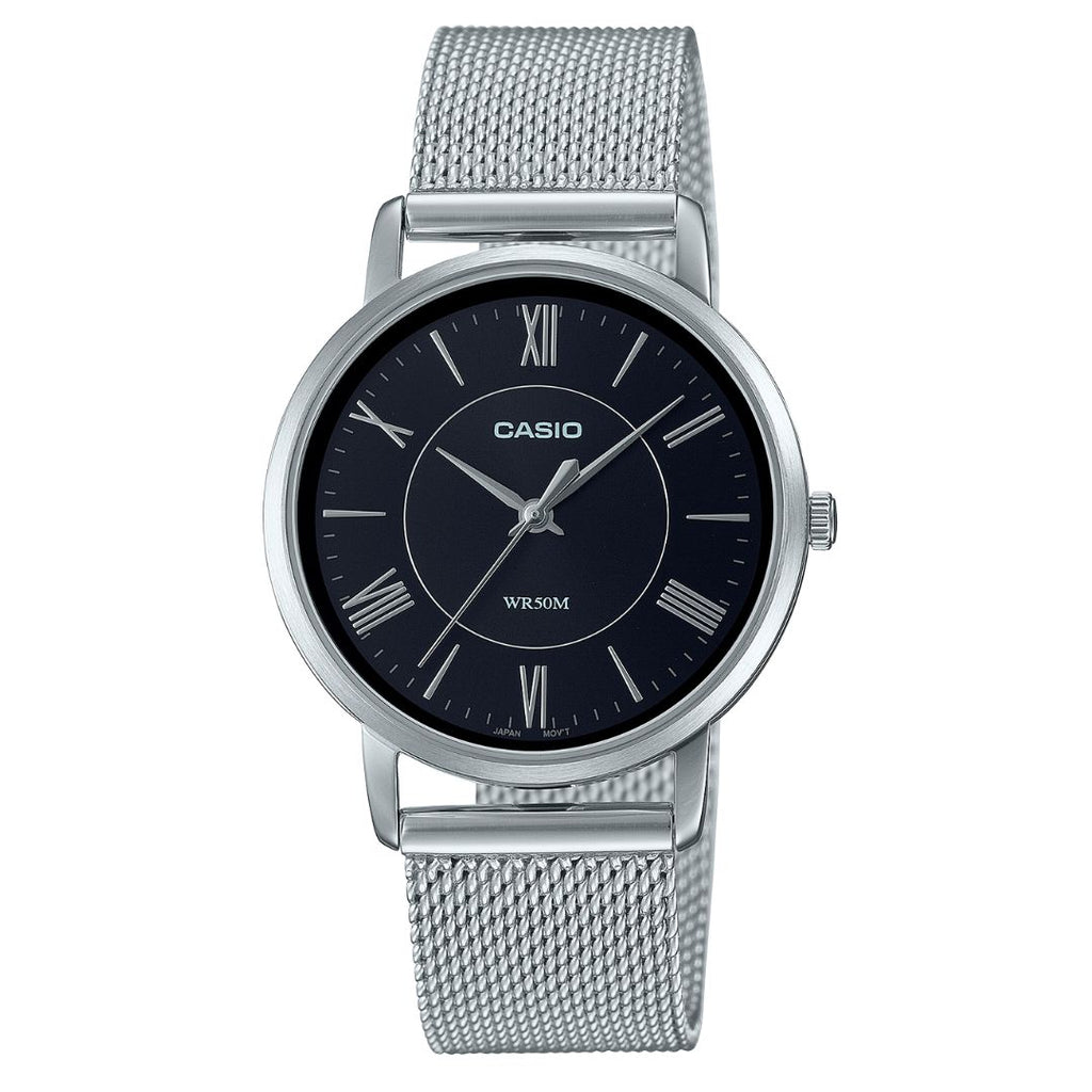 Con una resistencia al agua de hasta 50 metros, estos relojes se adaptan a todo lo que hace en la vida diaria, ya sea que los esté utilizando o no. Elija su combinación favorita: la elegante correa de malla de ajuste sencillo con esfera de reloj negra.
