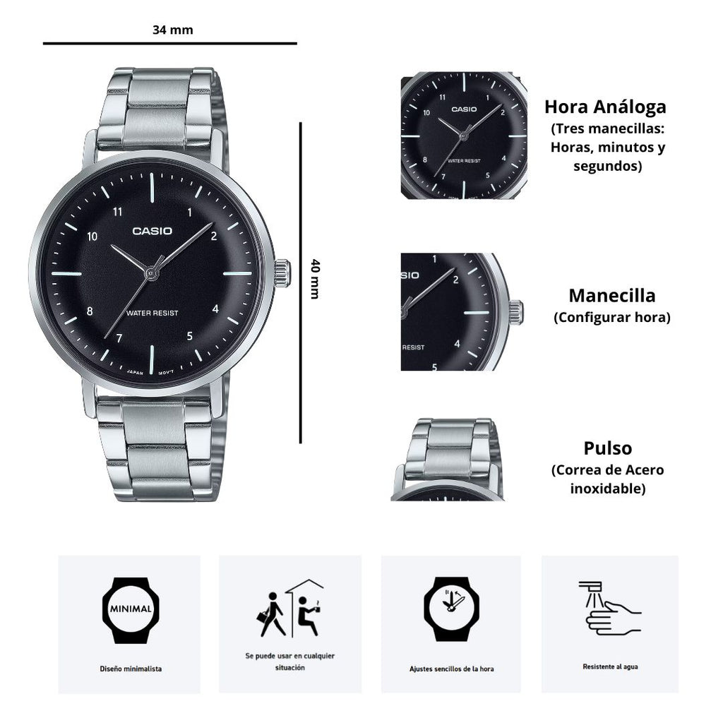 Reloj Casio LTP-VT03D-1B Diseño Elegante