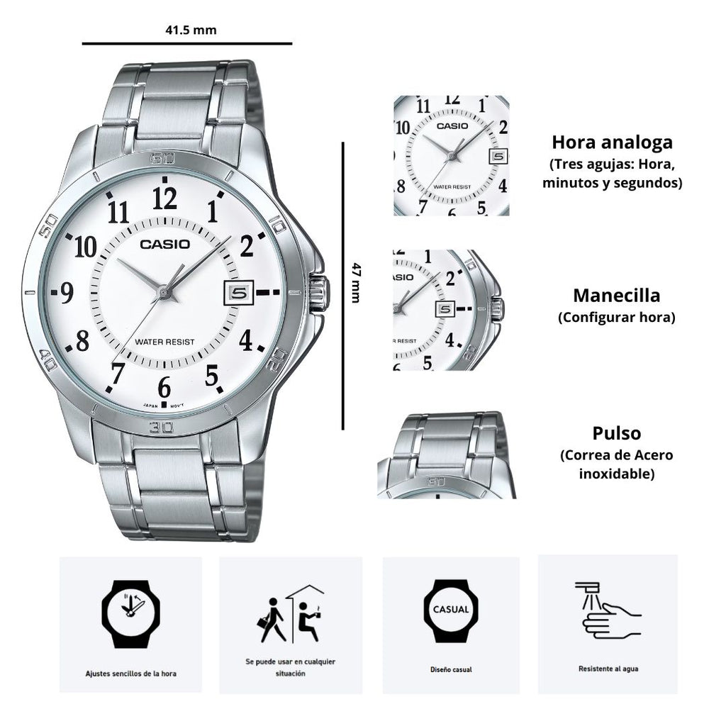 Reloj Casio Modelo MTP-V004D-7B Diseño Elegante