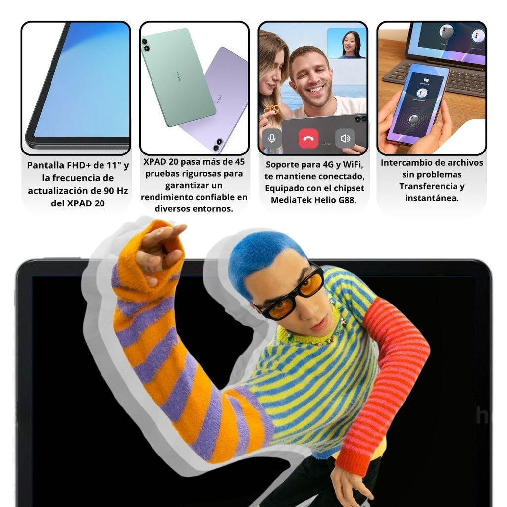 XPAD 20 pasa más de 45 pruebas rigurosas para garantizar un rendimiento confiable en diversos entornos.   Con soporte para 4G y WiFi, XPAD 20 te mantiene conectado dondequiera que estés. Equipado con el chipset MediaTek Helio G88, ofrece un rendimiento excepcional: permite manejar sin esfuerzo juegos, trabajo y todo lo demás. Transfiere fotos y archivos fácilmente desde tu teléfono a la tableta con un solo toque.