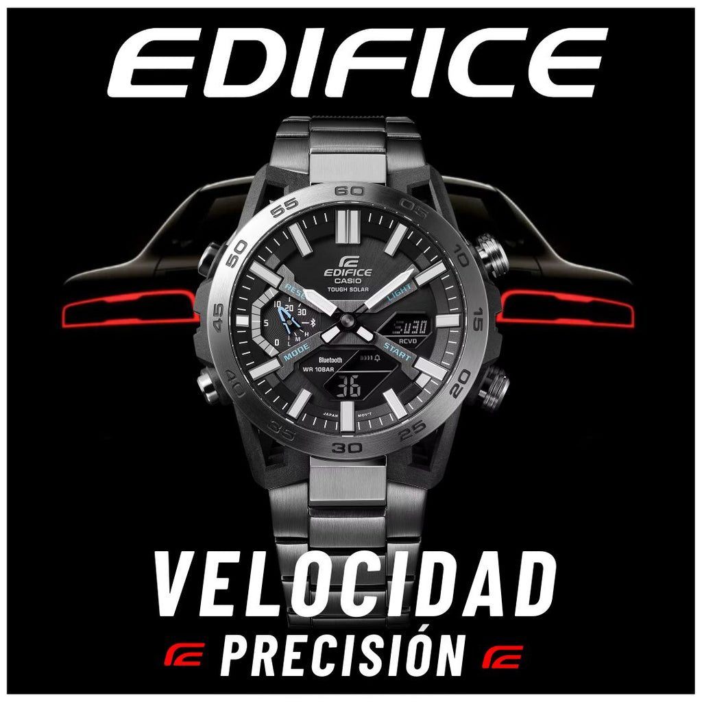 Bienvenido a la evolución de la Velocidad y la Inteligencia: la belleza de alta tecnología del cronógrafo metálico EDIFICE, con un estilo sofisticado y una conectividad sencilla con smartphones. Con este modelo, es facilísimo sincronizarlo con tu smartphone mediante Bluetooth y acceder a la app CASIO WATCHES para disfrutar de todas las funciones al alcance de la mano.