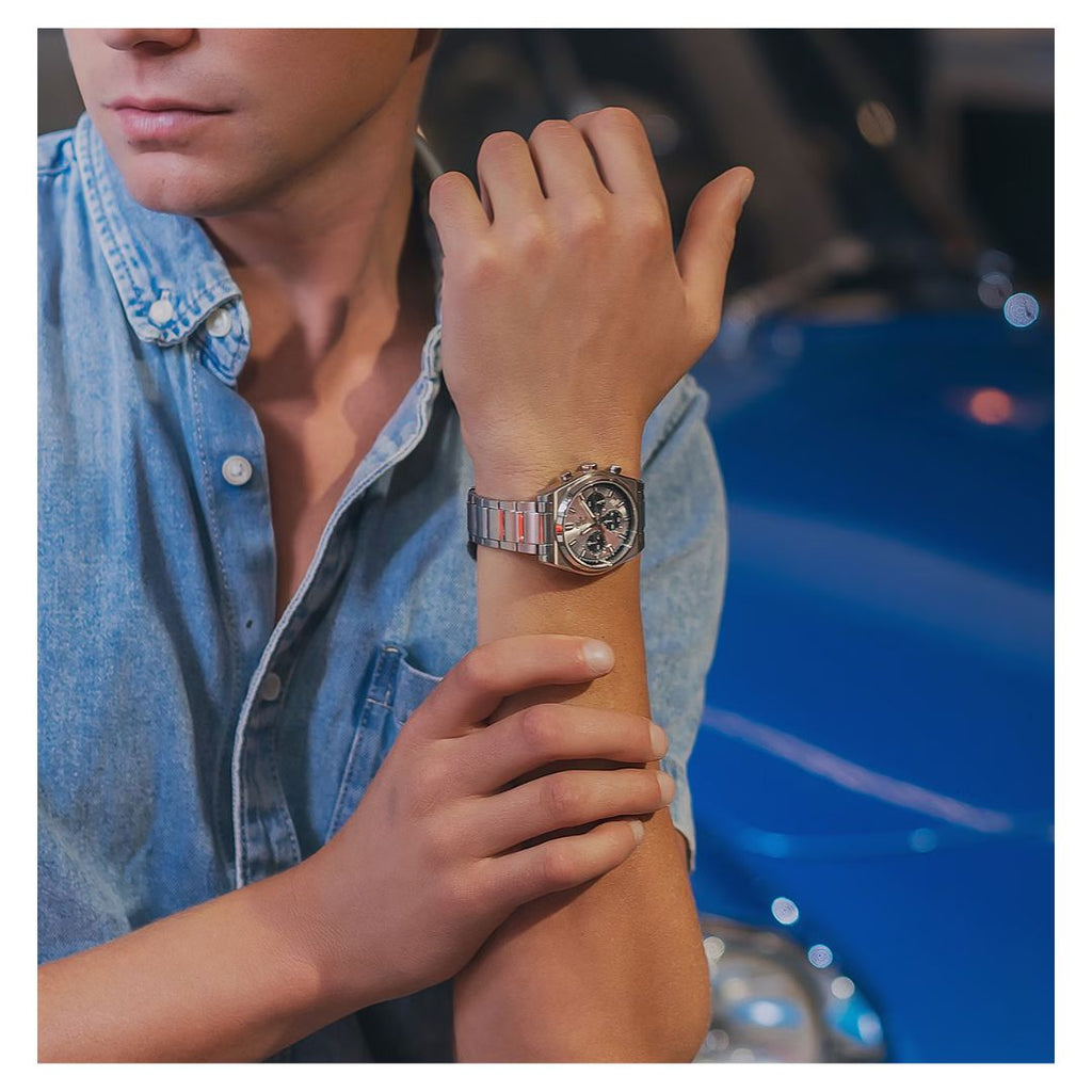 Presentamos el cronógrafo de deportes motorizados de EDIFICE inspirado en el automóvil deportivo clásico. Las llamativas barras de índice se unen al legendario diseño de dial 3-6-9 insertado en un diseño deportivo tradicional.