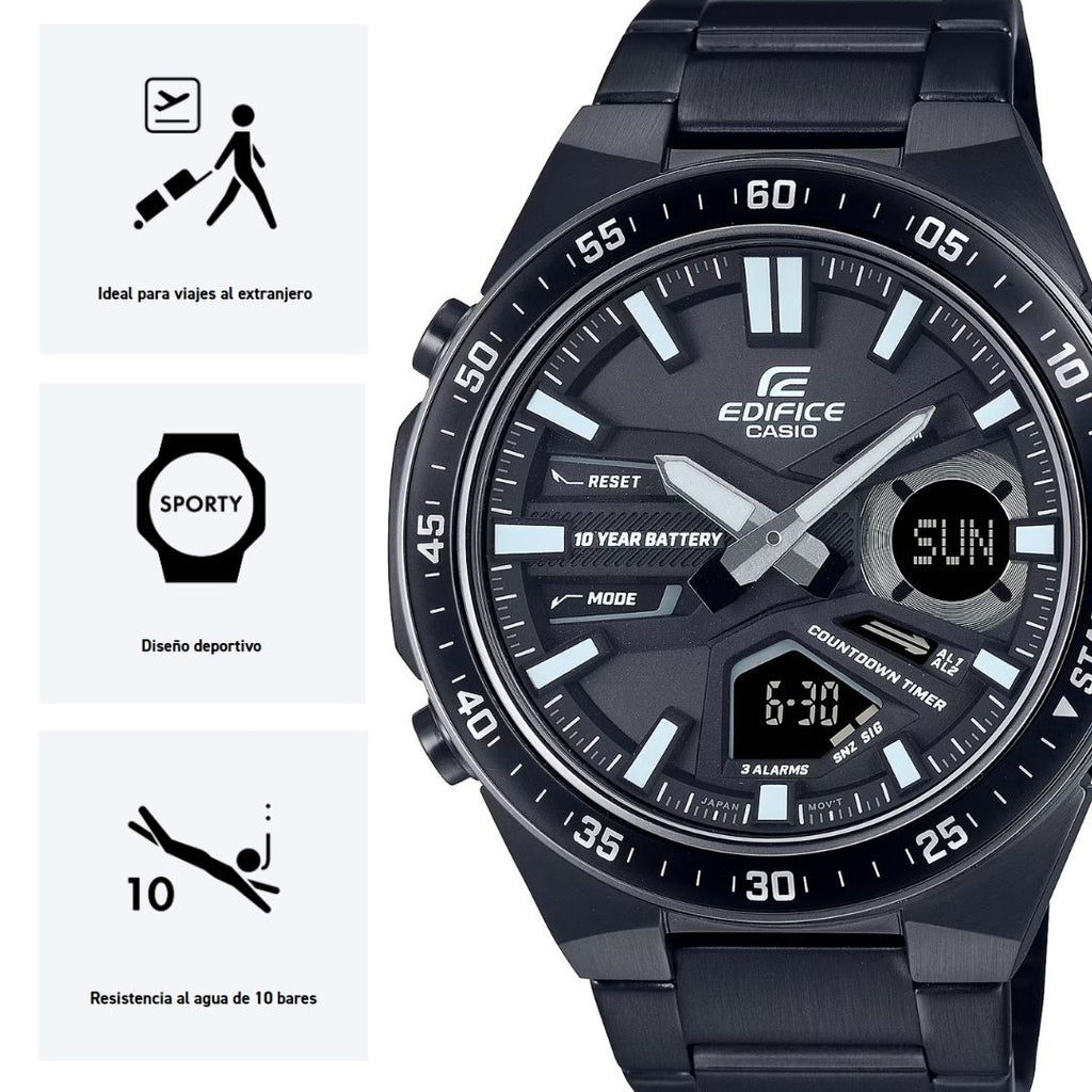 Libérate y concéntrate en la vida. Consigue un reloj analógico-digital con una batería de 10 años de duración que te dará tranquilidad durante años. El diseño de la esfera ofrece mayor profundidad y dimensionalidad para un estilo dinámico y deportivo. Las subesferas digitales integradas ofrecen diversas funciones, como hora mundial, cronómetro de 1/100 de segundo y temporizador de cuenta regresiva.