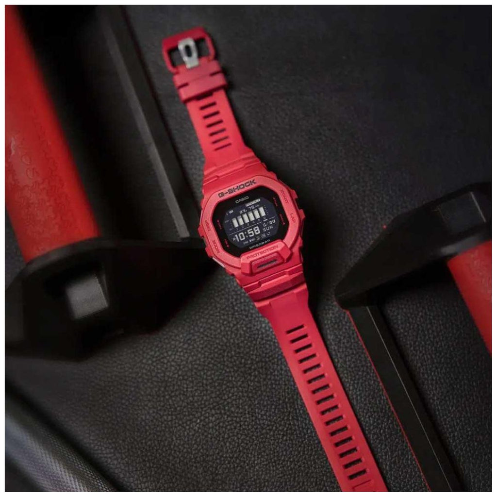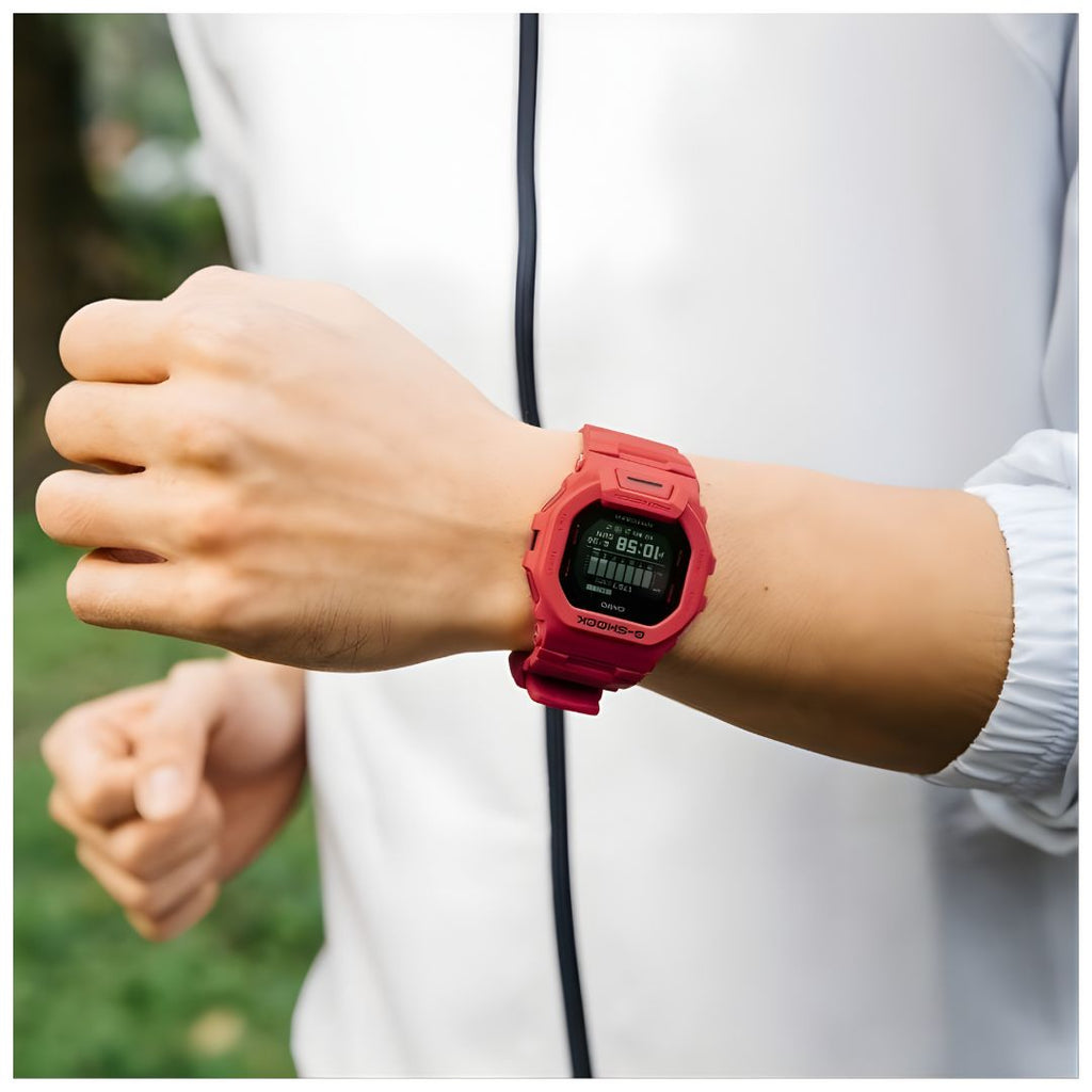 Presentamos un G-SHOCK deportivo en color rojo intenso. Lleve su entrenamiento al siguiente nivel con esta explosión audaz de color. Este reloj G-SQUAD, con todas sus funciones y estilo, le ofrece todo lo que necesita para entrenar al máximo. Acceda al GPS de su smartphone para medir el acelerómetro con precisión cuando desee analizar la distancia, la velocidad y el ritmo al correr, además de las calorías quemadas.