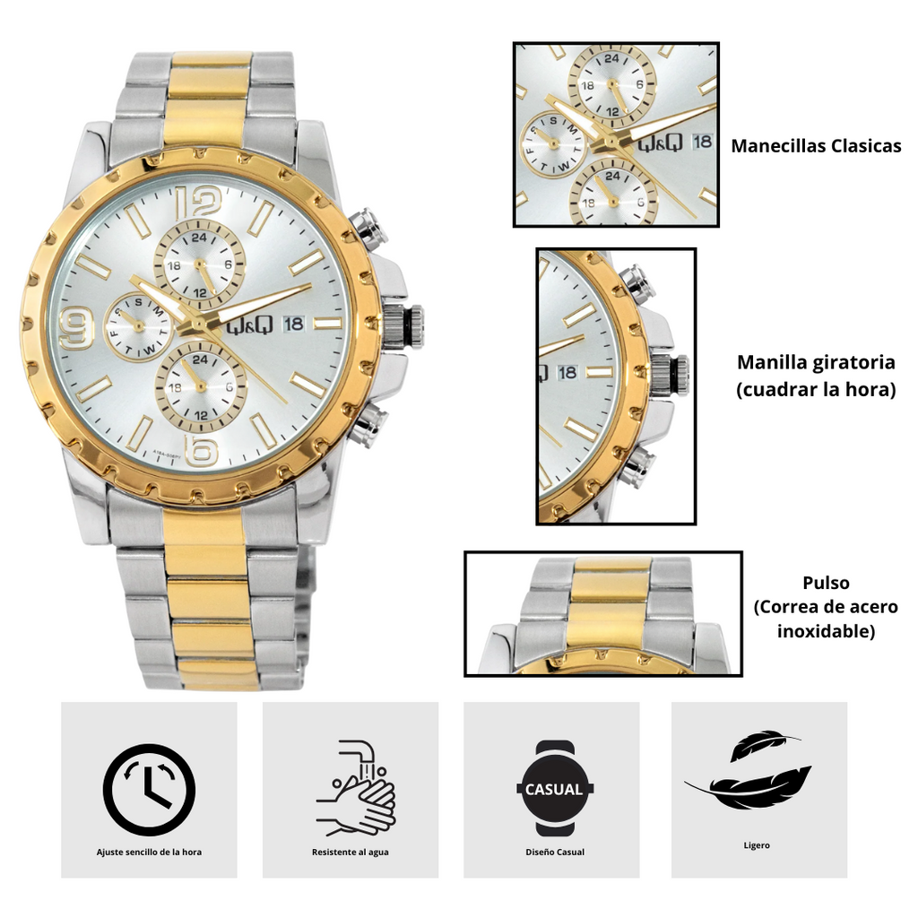 Diseño Robusto y Elegante: Fabricado con acero inoxidable de alta calidad en caja y brazalete, este reloj ofrece una durabilidad excepcional y un brillo que no pasa desapercibido, perfecto para cualquier ocasión, desde la oficina hasta eventos especiales.