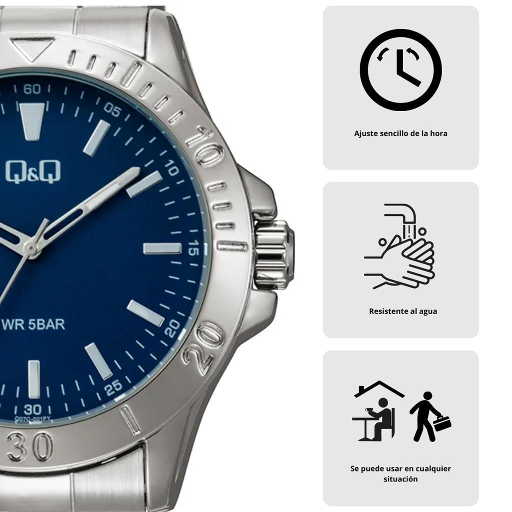 Q&Q es una marca de relojes conocida por ofrecer productos de alta calidad a precios accesibles. Su enfoque principal es combinar funcionalidad, durabilidad y diseño moderno, lo que la convierte en una opción popular entre los consumidores que buscan relojes confiables y elegantes sin un alto costo.