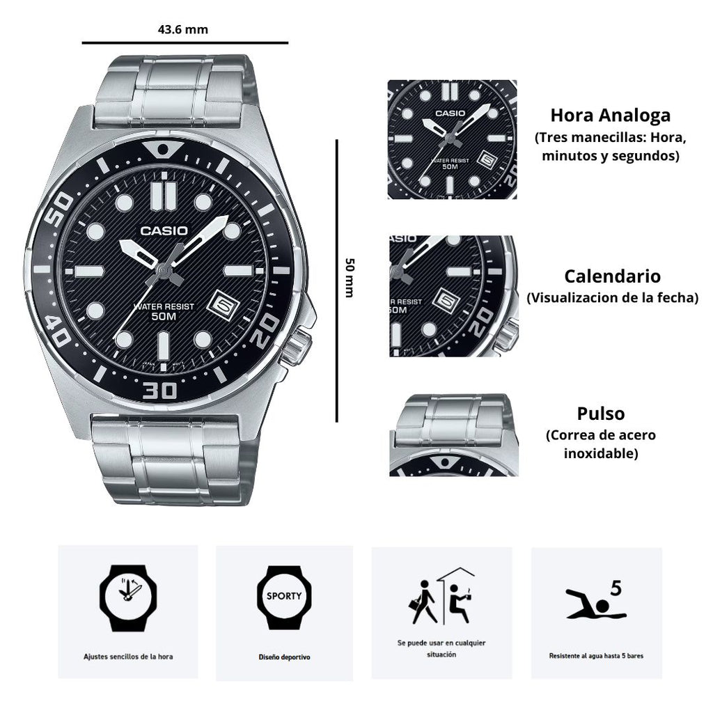 Reloj Casio Modelo MTD-135D-1A Diseño Deportivo